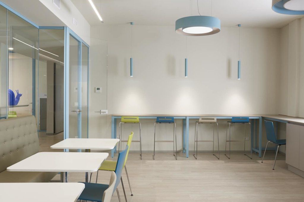 Partition walls, operative furniture and break areas