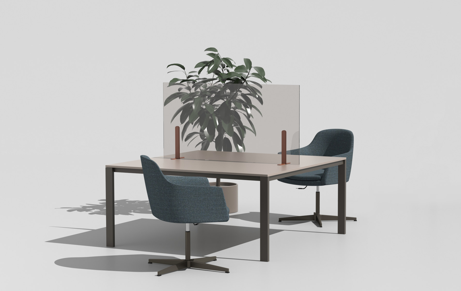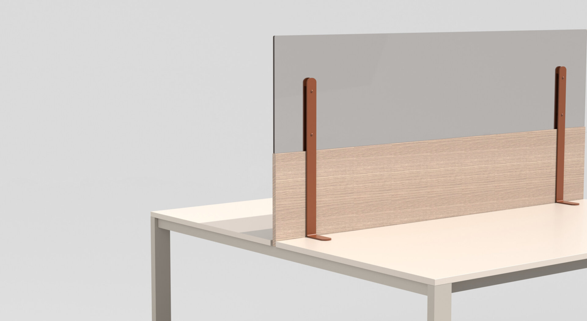 Una serie di screen divisori a pannello, modulari, autoportanti o agganciati a strutture da applicare ai piani delle scrivanie, per separare senza dividere.